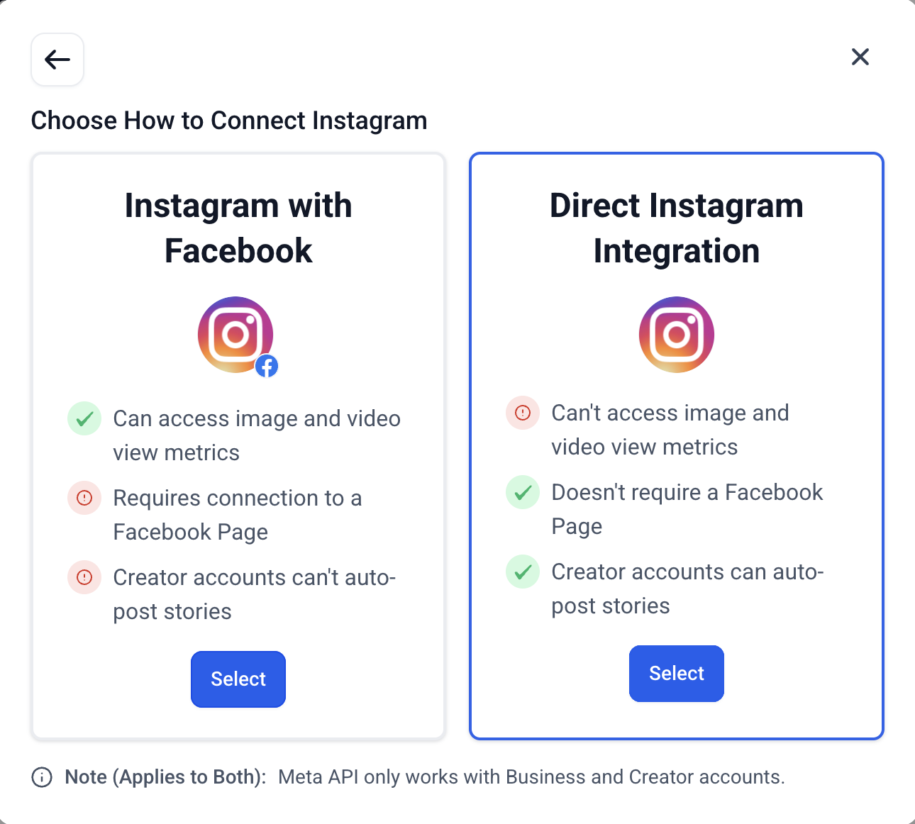 You'll be directed to Instagram to log into the appropriate account and grant permissions.